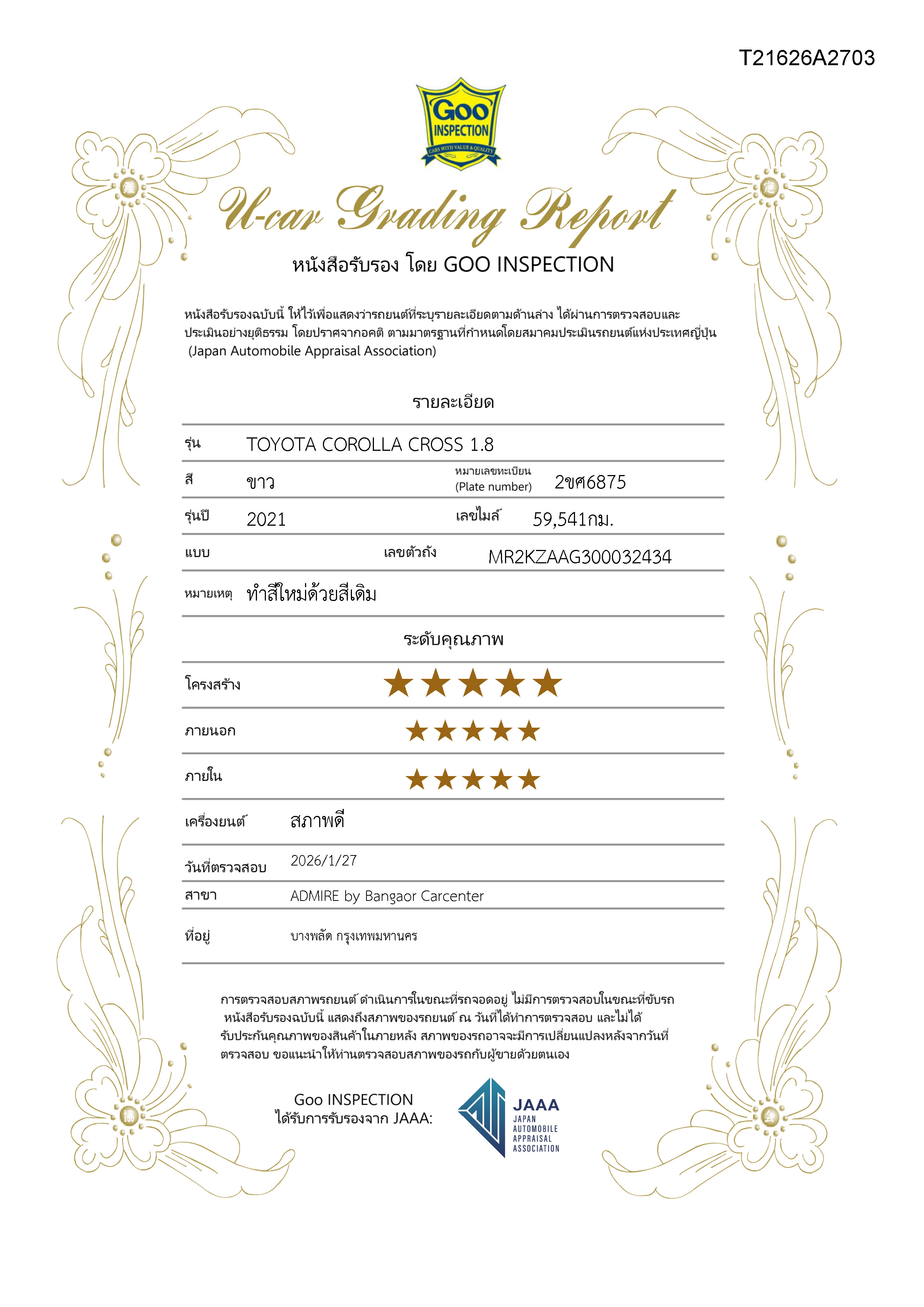 - ตัวถังเดิม มีใบรับประกันสภาพGooInspection